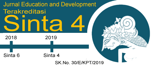 Jurnal Education and Development merupakan publikasi karya ilmiah dari hasil penelitian, pendidikan dan pengembangan ilmu pengetahuan, baik sosial, budaya dan lingkungan. Sebagai upaya untuk mewujudkan visi dan misi di Perguruan Tinggi. Jurnal Education and development mewadahi hasil pemikiran dan penelitian dalam peningkatan dan pengembangan secara berkesinambungan untuk mewujudkan sumber daya manusia yang berkualitas. Selain itu, dapat meningkatkan pengetahuan dan keilmuan. Jurnal Education And Development Terakreditasi Sesuai Dengan Keputusan DirekturDirektorat Jendral Pendidikan Tinggi, Riset, dan Teknologi Kementerian Pendidikan, Kebudayaan, Riset dan Teknologi Republik Indonesia Nomor : SK. Nomor 152/E/KPT/2023 Tentang Peringkat Akreditasi Jurnal Ilmiah Periode II Tahun 2023, Jurnal Education and Development Berada Pada Peringkat Sinta 4 (Empat) , Masa Berlaku Akreditasi selama 5 (lima) Tahun, Yaitu Volume 11 Nomomr 1 Tahun 2023 Sampai Volume 15 Nomomr 3 Tahun 2027 . Publisher jurnal ini adalah Institut Pendidikan Tapanuli Selatan.